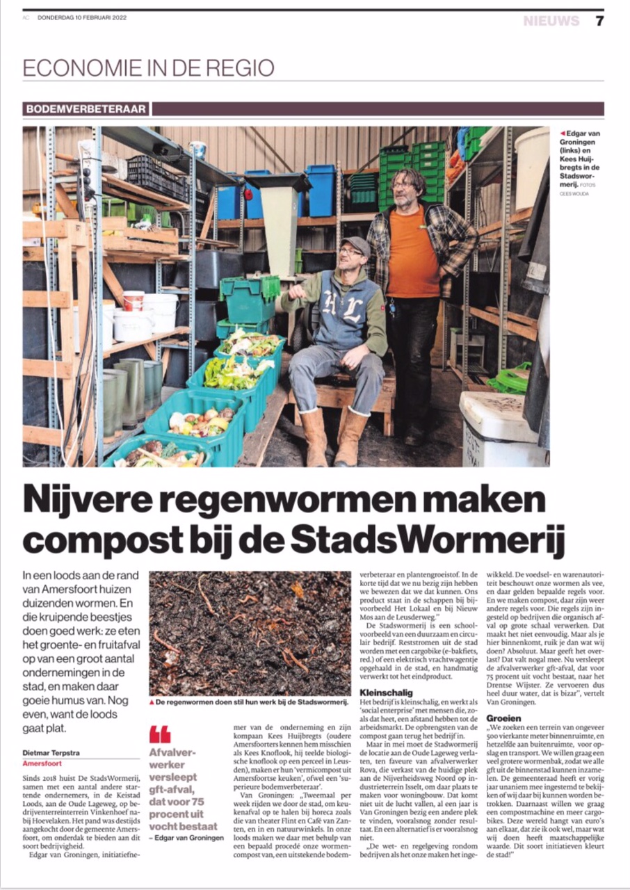 Op 10/2 verscheen op de Economie-in-de-regio-pagina van het Algemeen Dagblad / Amersfoortse Courant een verhaal over onze zoektocht naar een plek.